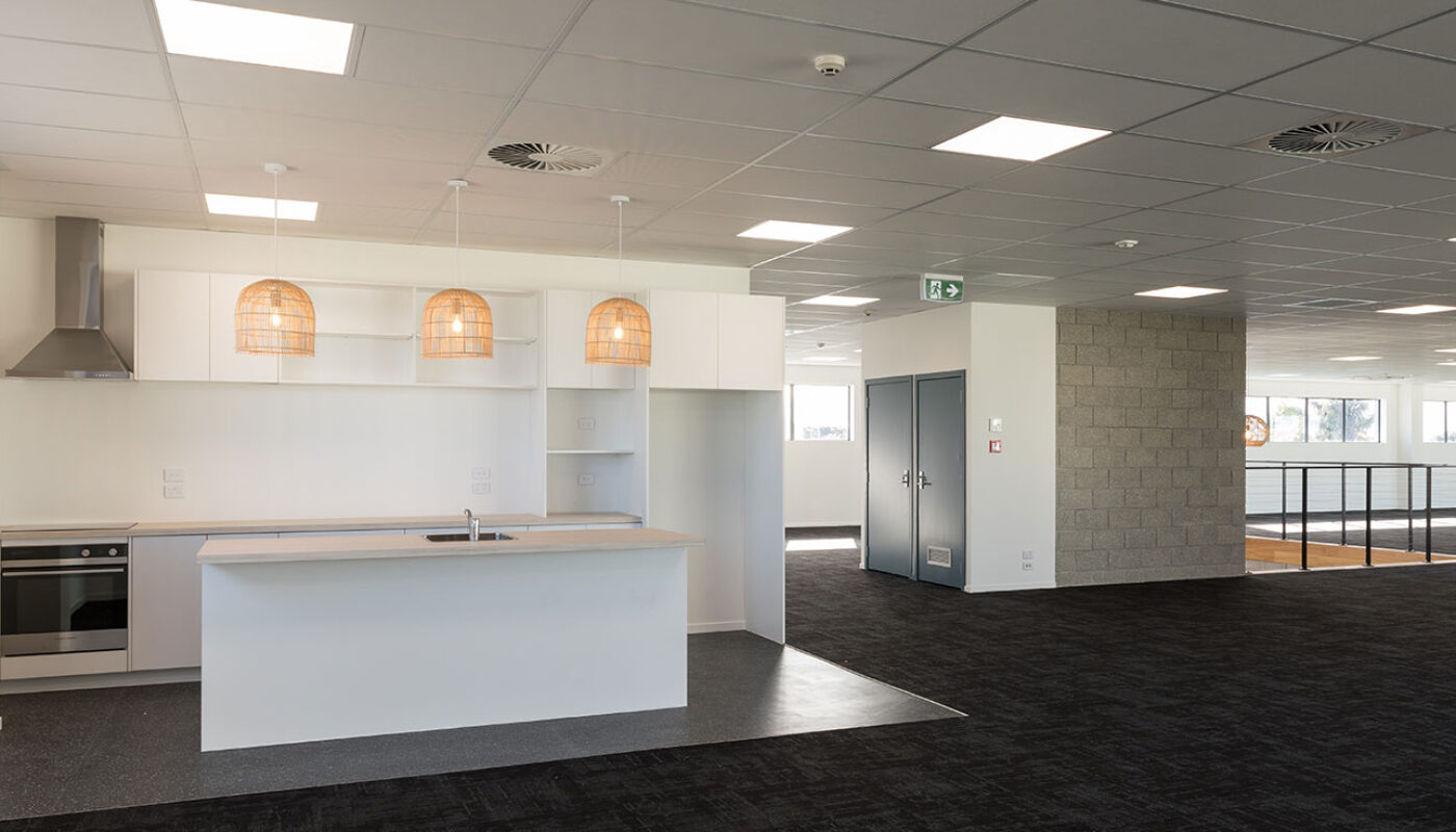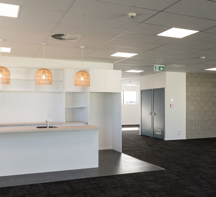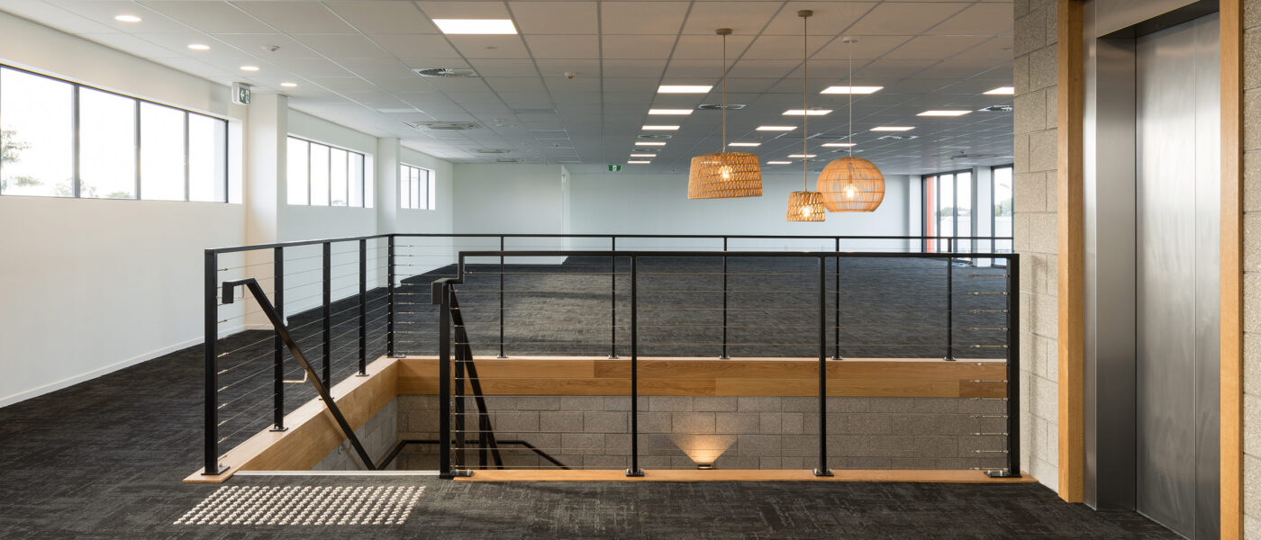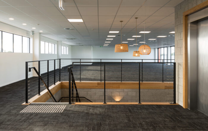 B3 Interiors completed the interior fit out of 80 Parton Road, Papamoa. Featuring honed block and custom steel stairways and central riser, the office fit out includes full kitchen facilities to suit shared office space demands.