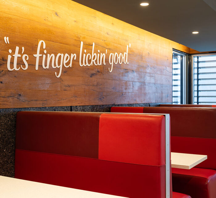 B3 Interiors have the pleasure of working with restaurant Brands to refresh and refurbish their restaurants around NZ. For this particular KFC, new table and chairs were created and custom timber joinery wall panels. B3 also completed a full paint of internal and external surfaces, plus a kitchen refurbishment and works to the drive through areas.